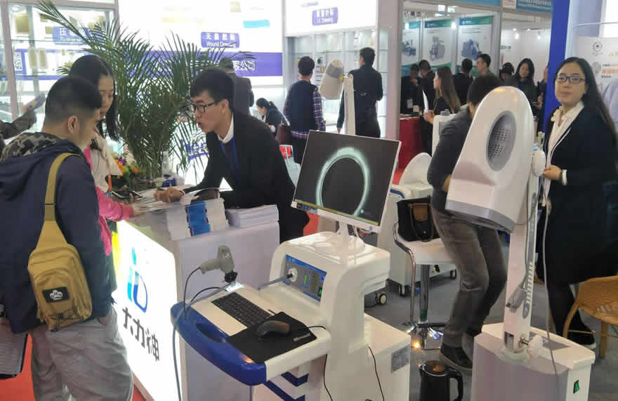 中醫(yī)特色康復(fù)理療產(chǎn)品---“大力神雀啄灸”依然是此次醫(yī)博會公司所有參展產(chǎn)品中最具亮點和吸引眼球的產(chǎn)品之一,產(chǎn)品展位前人頭顫動,眾多國內(nèi)外醫(yī)療同行和經(jīng)銷商競相了解、咨詢和體驗,工作人員通過專業(yè)產(chǎn)品知識的講解和療效體驗以及創(chuàng)新營銷合作方式的介紹,客戶和經(jīng)銷商們對新品表現(xiàn)出濃厚的興趣,紛紛表示要求引進臨床或共同合作開發(fā)該產(chǎn)品市場。