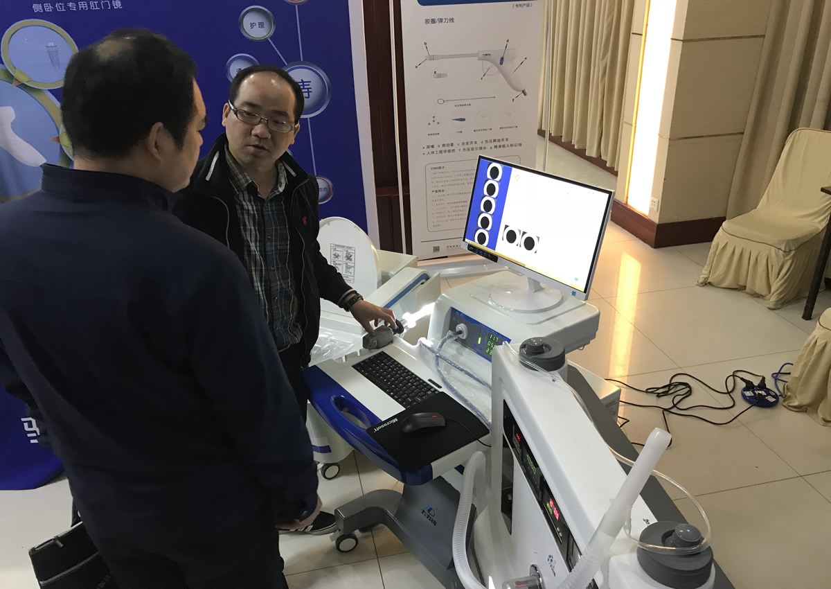 此次我公司在學術會上展示了“內窺鏡檢查數(shù)字攝像系統(tǒng)”、“超聲霧化熏洗儀”、“結腸水療儀”等肛腸設備。